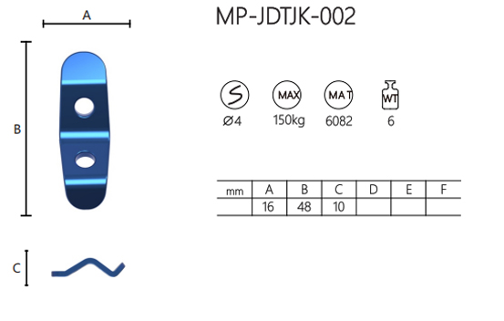 Der MP-JDTJK-002 ist eine blaue taktische Gürtelschnalle für den Außenbereich. Es besteht aus einer Aluminiumlegierung 6082 mit Oberflächenbehandlung der Güteklasse 6 und kann bis zu 150 kg tragen. Es ist auf Festigkeit und Haltbarkeit ausgelegt und misst 16 mm in der Dicke (A), 48 mm in der Länge (B) und 10 mm in der Breite (C). Seine kompakte Größe und robuste Konstruktion machen es ideal für Outdoor-Ausrüstung und taktische Ausrüstung und gewährleisten eine zuverlässige Leistung unter anspruchsvollen Bedingungen.